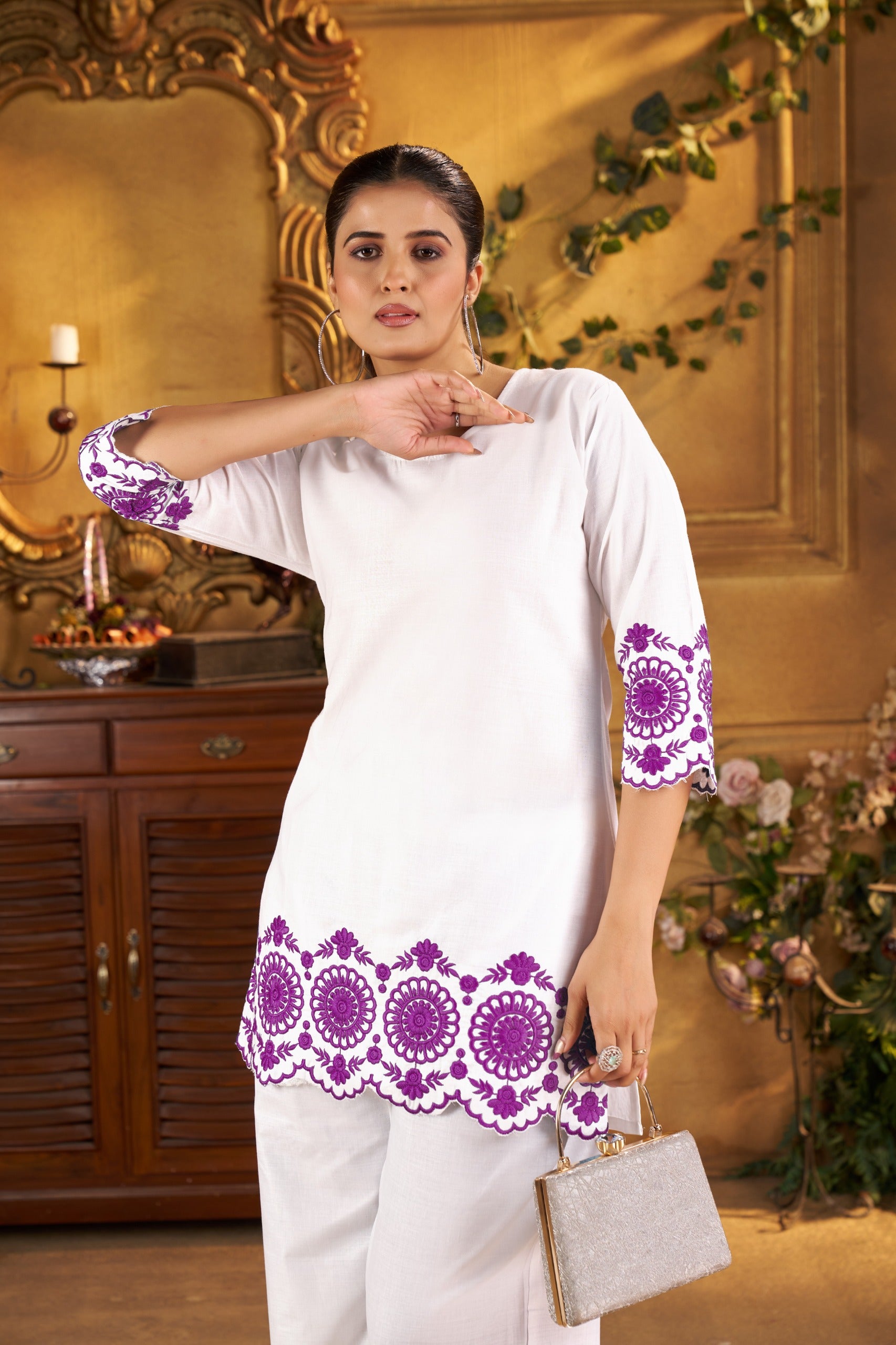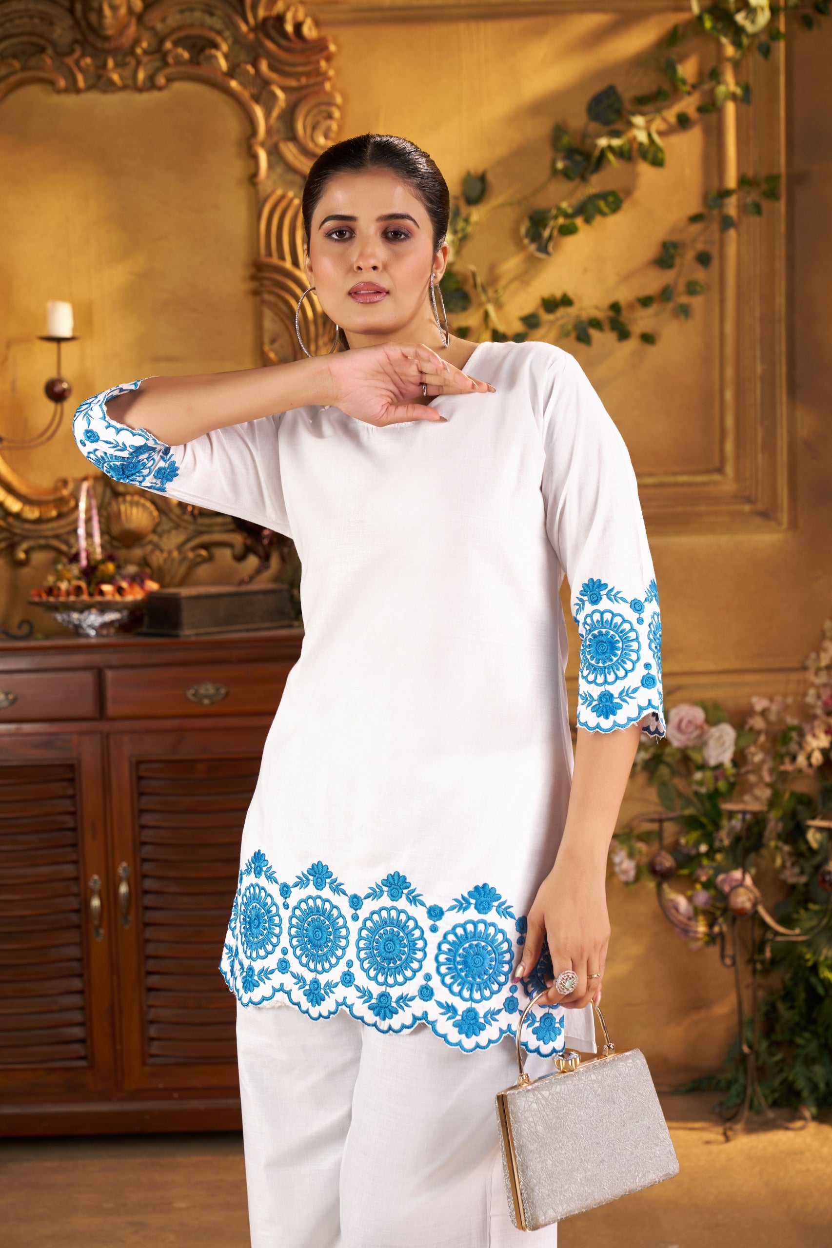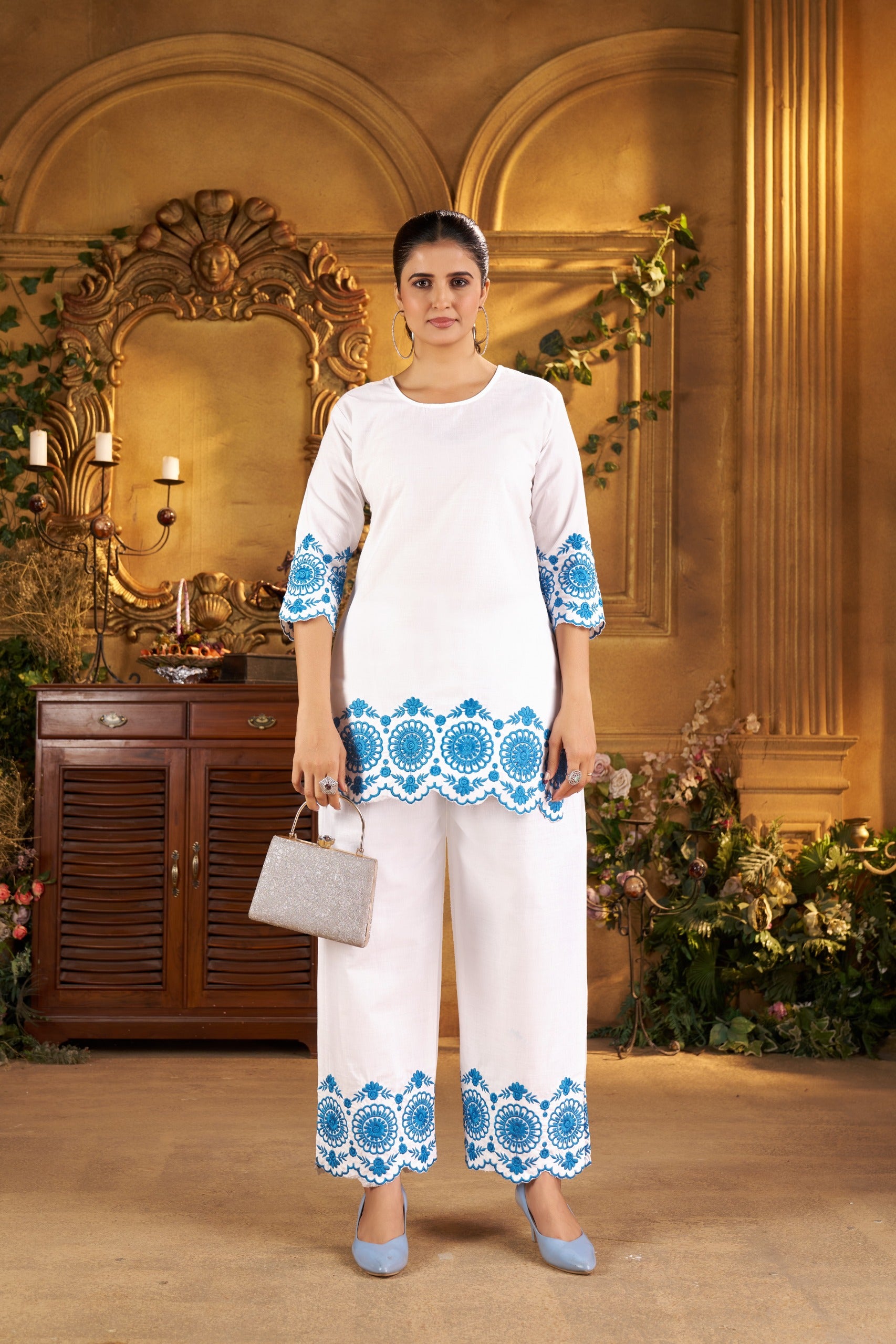 Elevate your everyday style with this trendy co-ord set, designed for modern teen girls and young women. The set features a chic embroidered top paired with comfortable matching pants, striking the perfect balance between fashion and elegance.