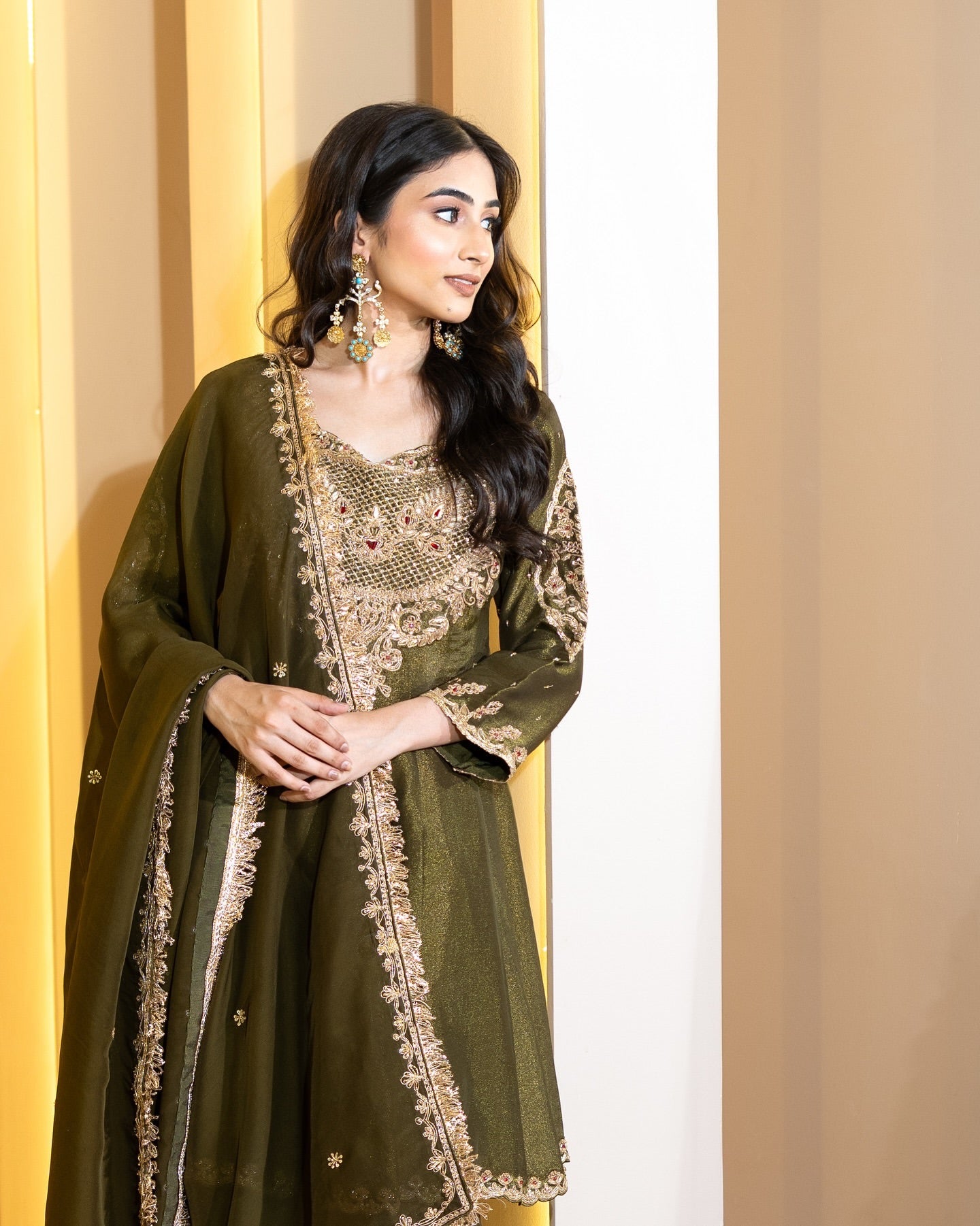 Fabric: Heavy Simar silk with embroidery sequence work and kali cutting