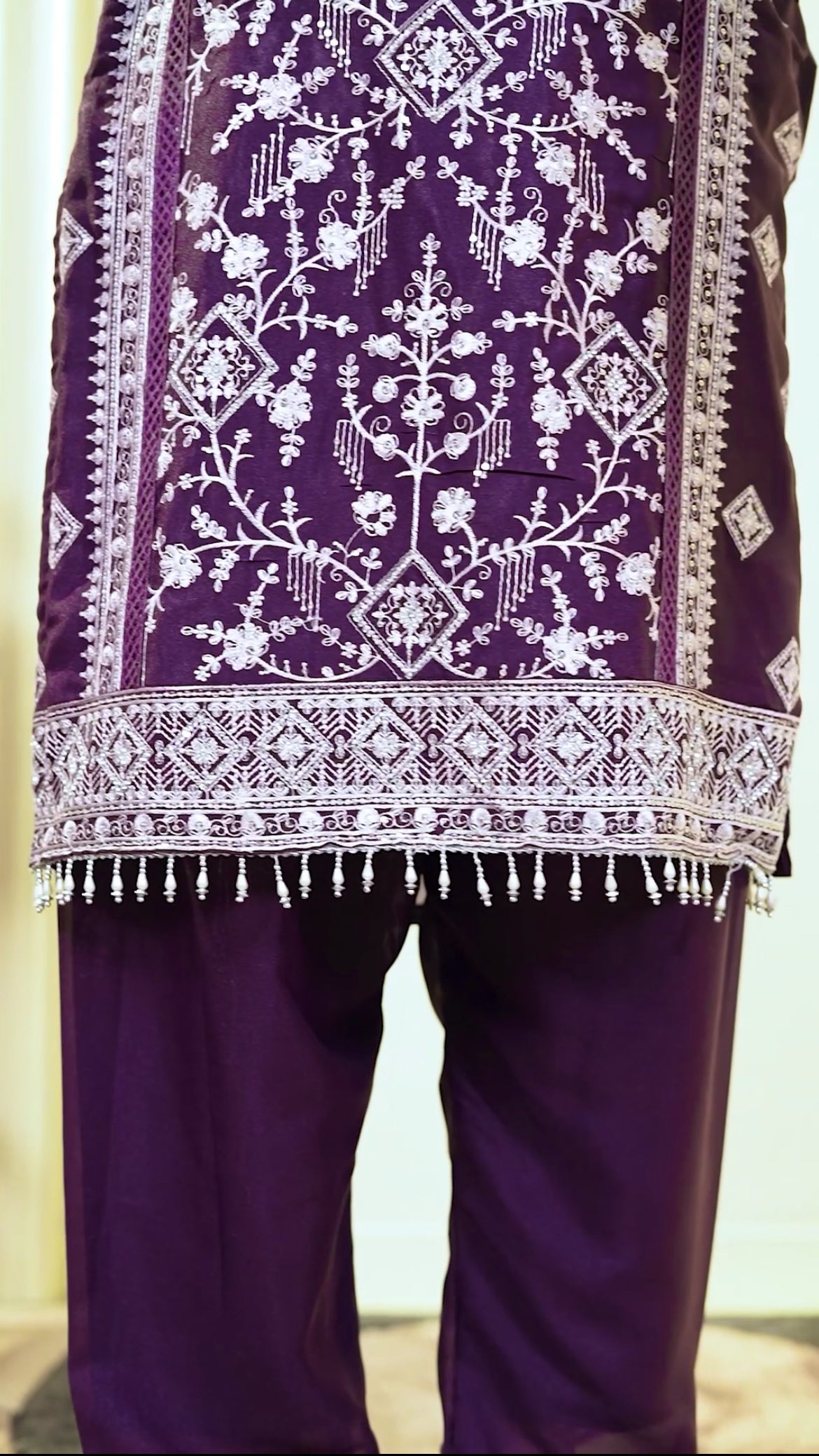 Sequence Embroidery Top with Farsi Palazzo & Dupatta