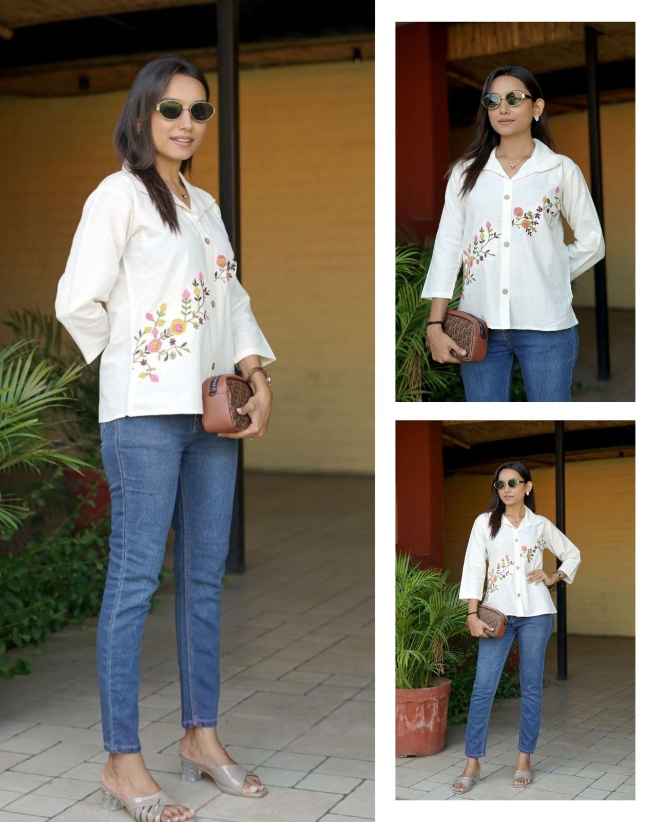 Premium Cotton Flex Embroidered Top – Button Down, Soft & Stylish
